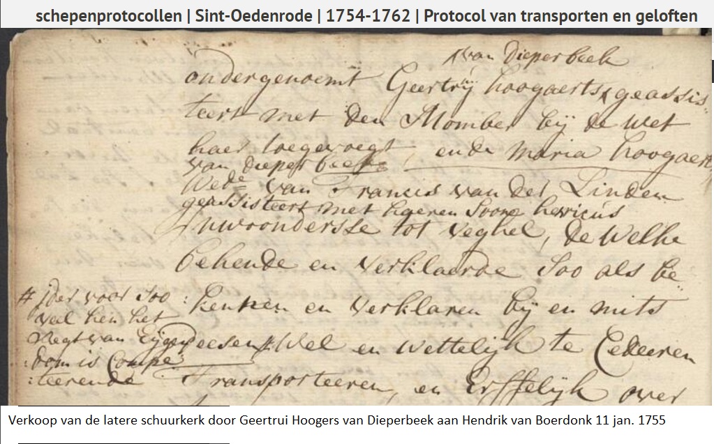 Verkoop van de latere schuurkerk door Geertrui Hoogers aan Hendrik van Boerdonk 11 januari 1755.