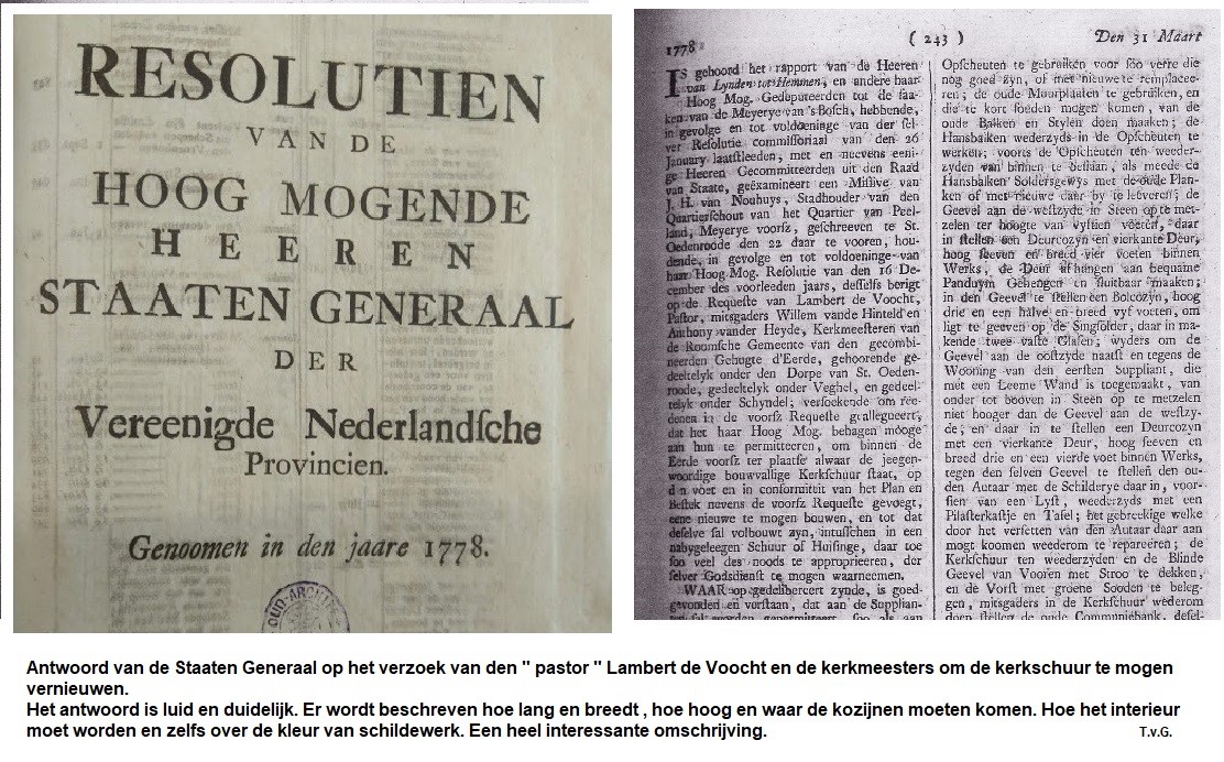 'In het Bisschoppelijk Archief van 's-Hertogenbosch lezen we hierover het volgende: 'Zodraa de uitoefening der Godsdienst na de inval der Franschen (1672) weder was toegelaten, hebben de inwoners van d'Eerd eene Schuurkerk gebouwd.....'