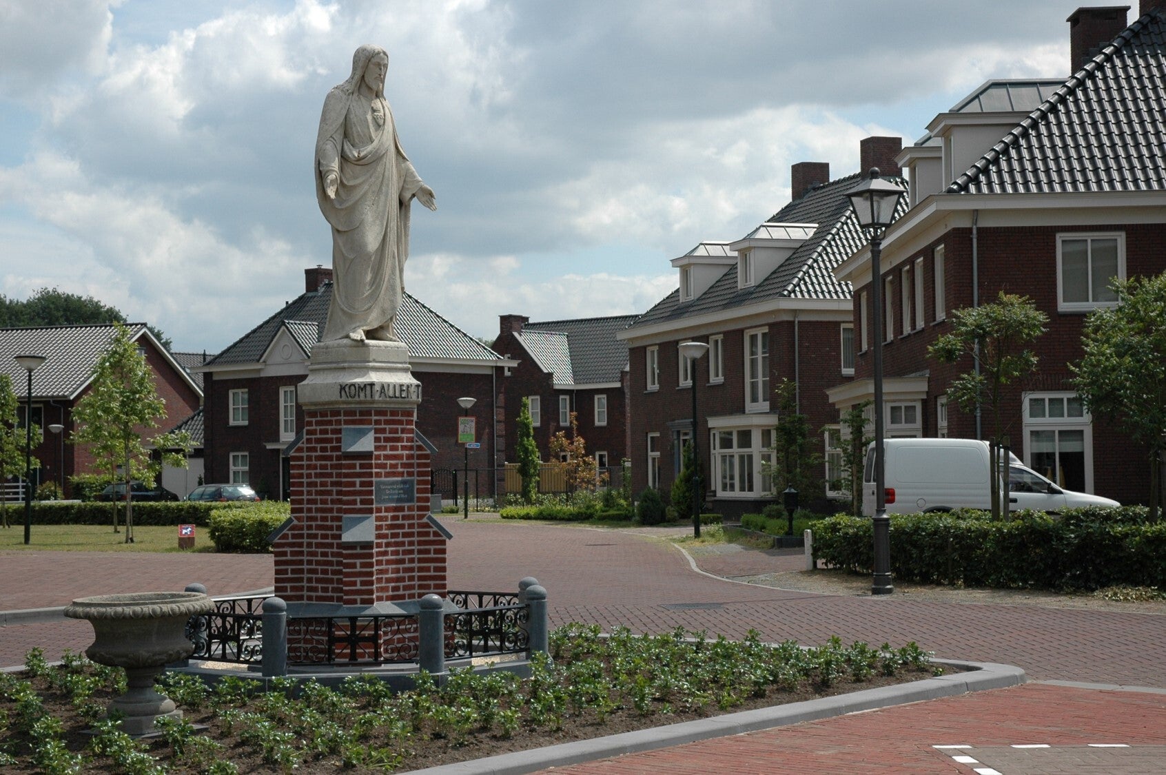 Heilig Hartbeeld na restauratie in 2008. Het beeld werd voorzien van een nieuwe sokkel en hekwerk. Foto: Antoinette van de Burgt, 31 mei 2009.
