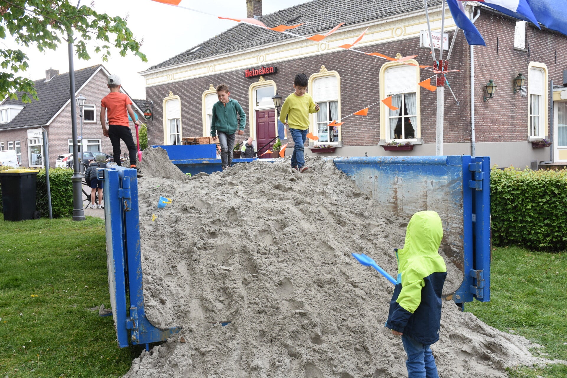 Koninginnedag 29 april 2006. Spelletjesochtend op het pekveldje achter De Brink. Links op de foto Jeroen van Pinxteren. Rechts van hem Marianne Vissers.