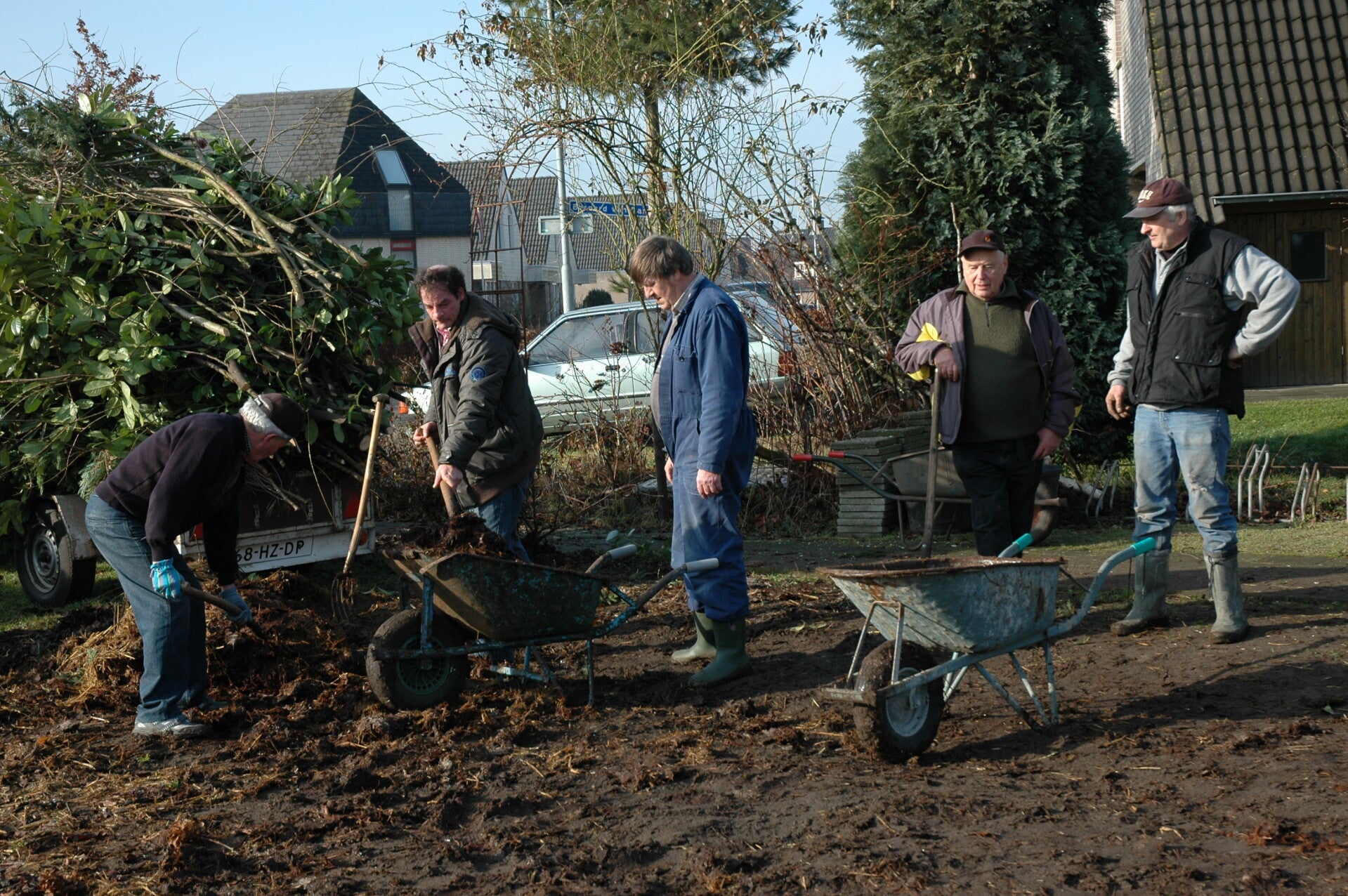 Volop belangstellin voor de open dag. V.l.n.r.: Nol van Zutven, Toos van Zutven-Renders, Leentje Krol-Verhagen, Martien Krol, ? en Marinus van Aarle, 18 september 2005.
