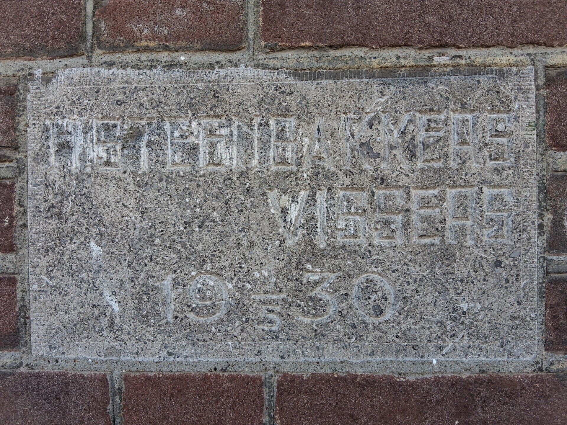 Gevelsteen Kapelstraat 32. Tekst: H Steenbakkers, 1-5-1930. Foto: Antoinette van de Burgt, 30 maart 2026.